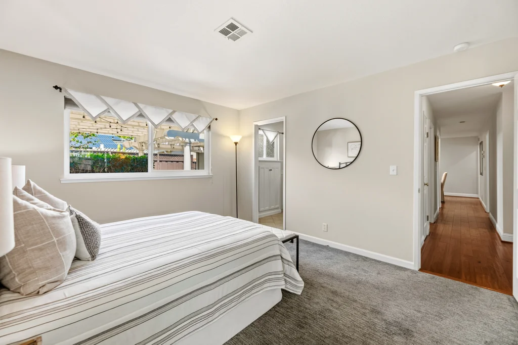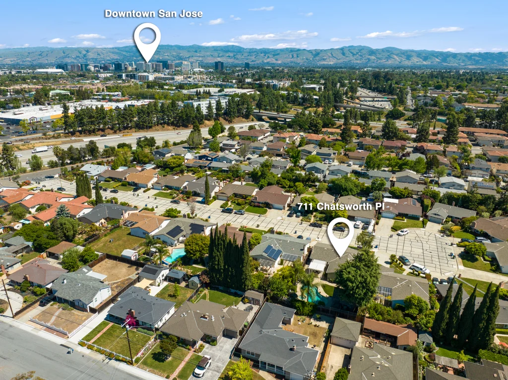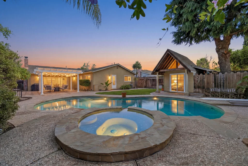 This 4 bedroom, 2 bath, with over 1,800 sq ft is intentionally designed and appealingly located in a lovely Midtown San Jose neighborhood. The main living space is well lit and spacious, allowing plenty of room for entertaining, with two thoughtfully located fireplaces adding comfort to the space. The kitchen is carefully curated with granite countertops and accented pendant lights. The main bedroom is equipped with double glass door closets, with all the bedrooms having carpeted floors and spacious interiors. The private backyard is complete with manicured palm trees, a large area to entertain and play and a pool with a hot tub. Along with this, a detached office is placed in the backyard for a unique and functional workspace. Easy access to highway 280 and other commuter routes. Minutes to Downtown San Jose and Santana Row. A perfect central place for comfort, entertaining, and style all in a beautiful neighborhood with striking San Jose charm.